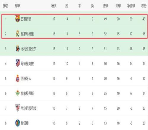 3,如今的巴萨,手握7分的优势,这无疑让身后的皇马压力巨大,虽然西甲赛程还没过半,但是皇马争冠已经完全落于下风;