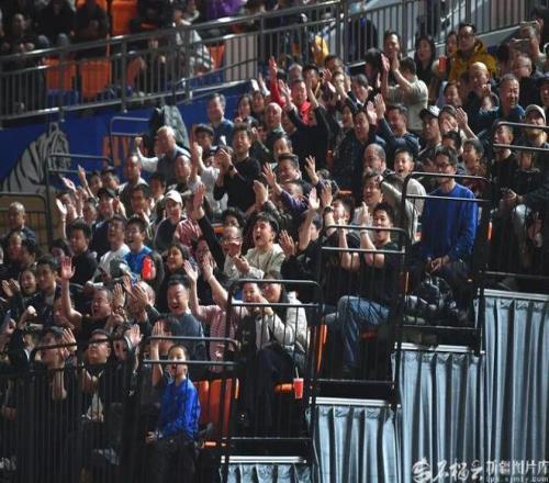 12月13日,现场球迷为新疆男篮加油助威。