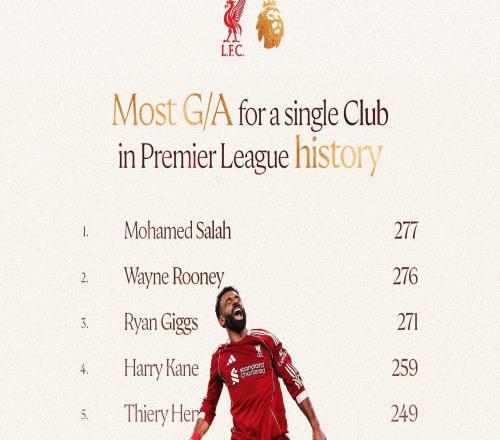 277球,萨拉赫成为英超历史代表单一俱乐部直接参与进球数第1